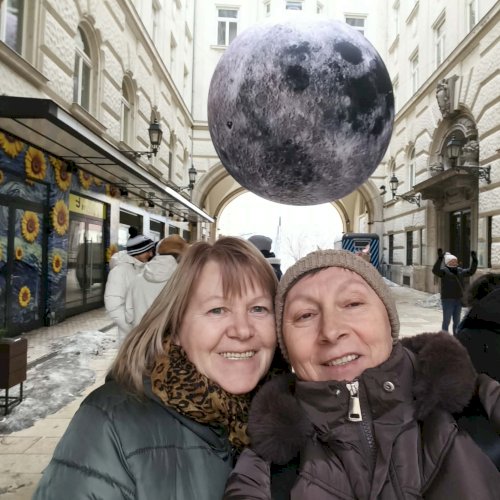 Még 2024-ben tűnt fel az installáció, ponosabban a Piarista közben, július elején jelentek meg az első híradások, azóta keringenek az emberek (pestiek, turisták, magyarok, külföldiek), fotóznak, pózolnak előtte-alatta. Mint olvasom, a Lumiere Hall helyezte ki kapcsolódva az akkor meghírdetett "Van Gogh és Gustav Klimt műveit bemutató multimédiás kiállításhoz".[1]