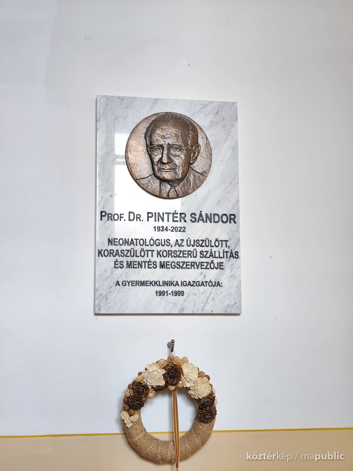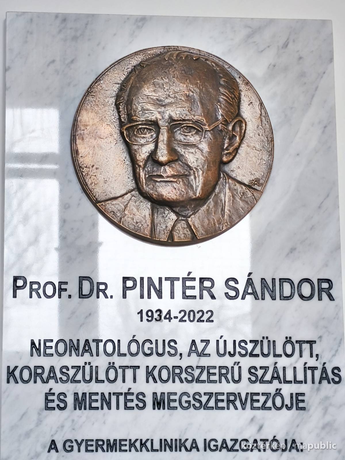 "2024. december 11-én került felavatásra a Gyermekklinika két korábbi intézetvezető professzorának, Dr. Pintér Sándornak és Dr. Túri Sándornak emléktáblája. Prof. Dr. Katona Márta méltatta a két professzor munkásságát és életútját. Az emléktáblákat Prof. Dr. Lázár György dékán és Dr. Bereczki Csaba, a Gyermekgyógyászati Klinika és Gyermekegészségügyi Központ tanszékvezető egyetemi docense koszorúzta meg. A méltatásokat Karunk honlapján olvashatják." [2]