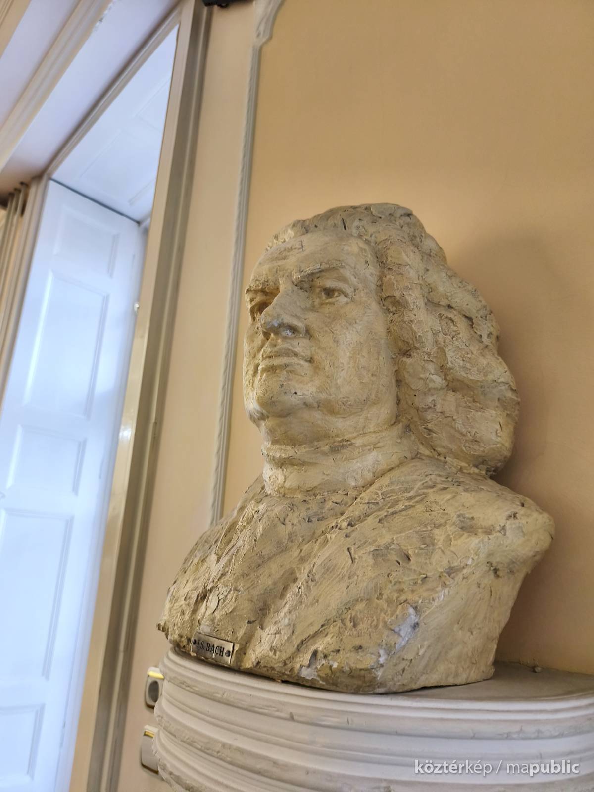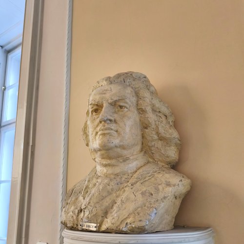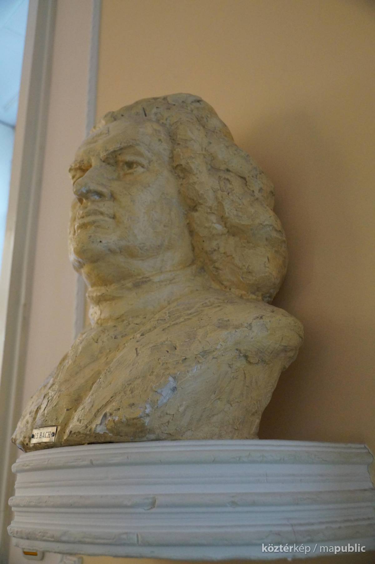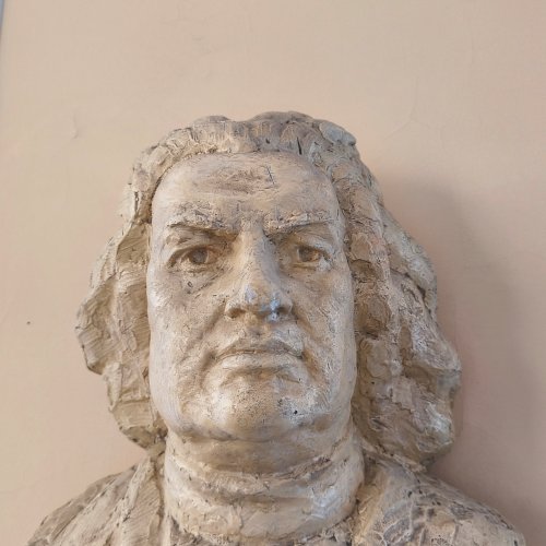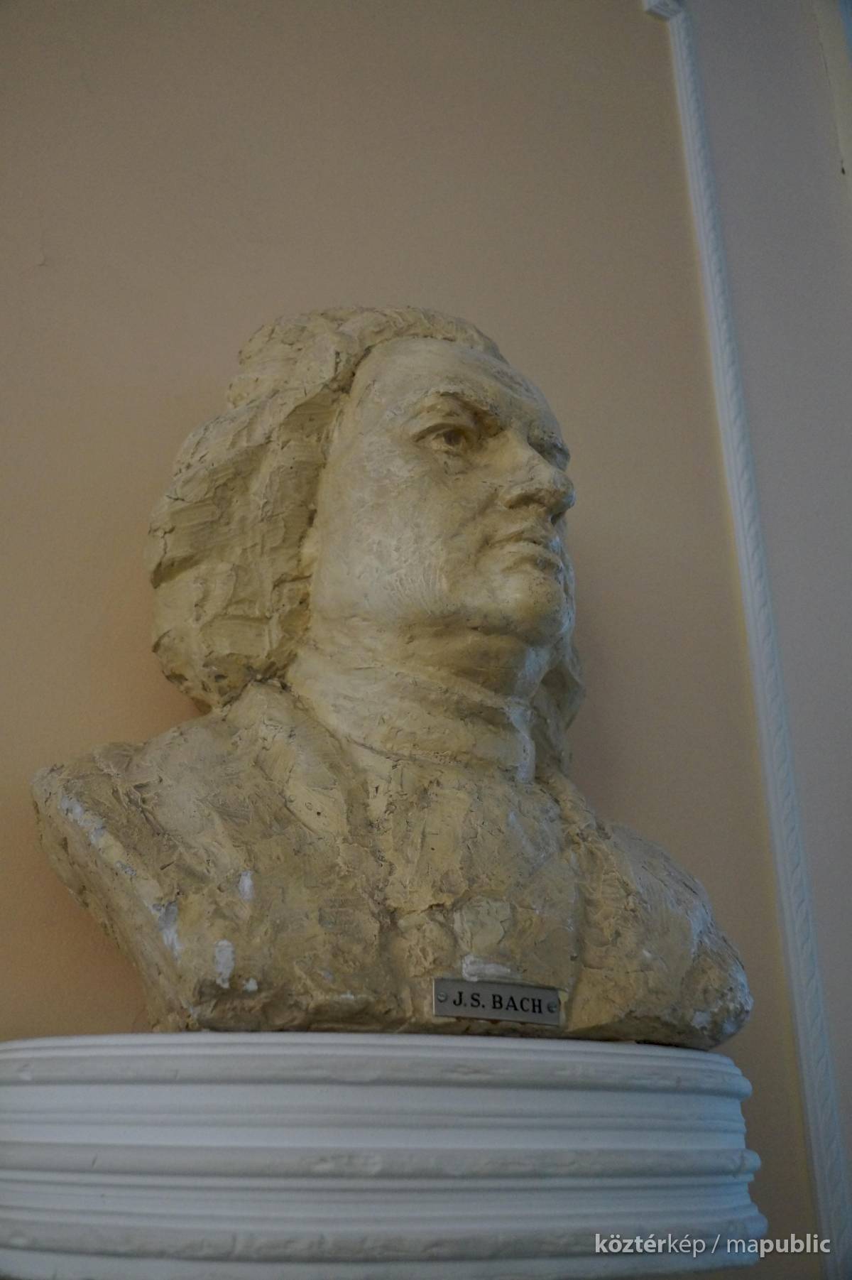 A szabadkai zeneiskola koncerttermében, a bejárattal szemben, lévő falra szerelt konzolon látható a híres zenszerző, Bach életnagyságú mellszobra. Almási Gábor szobrászművész [2] készítette gipszből. Fényes bézs színű festékkel vonták be. A szobrász a művészt rizsporos parókában felemelt fejjel, markáns vonásokkal ábrázolta. Elöl kis táblán a név olvasható.