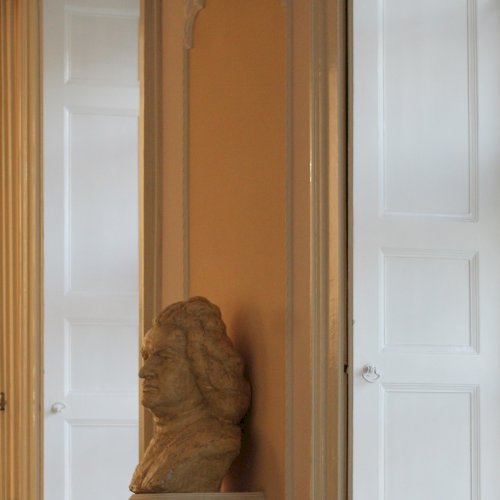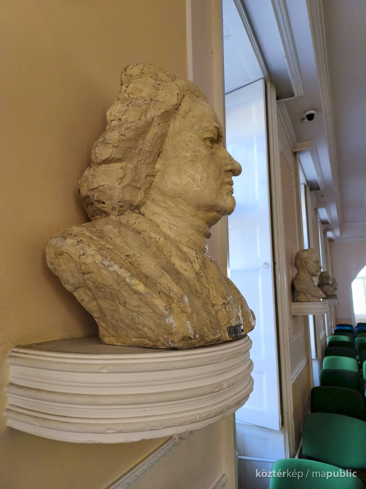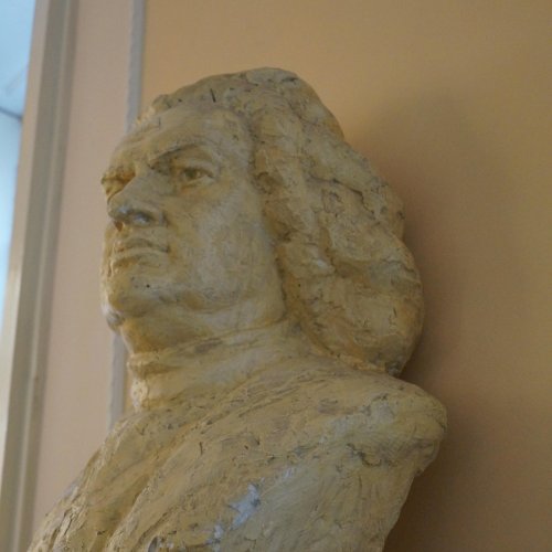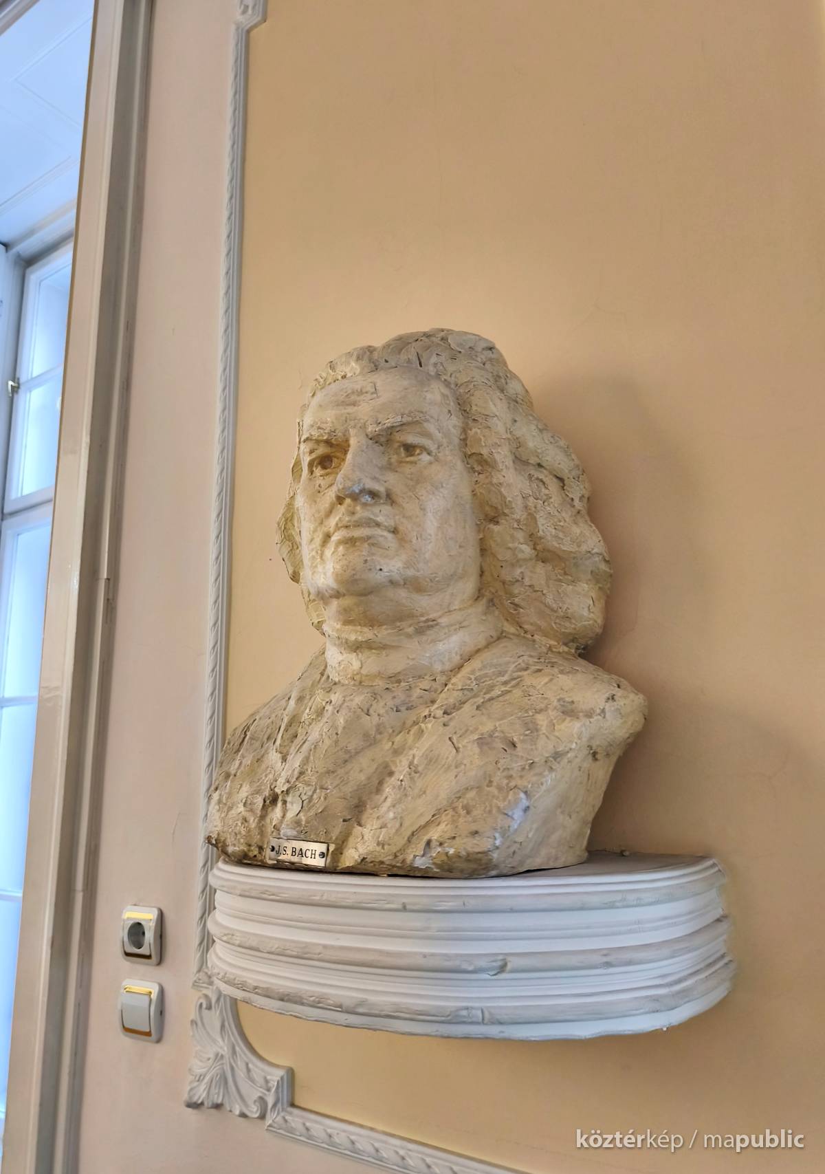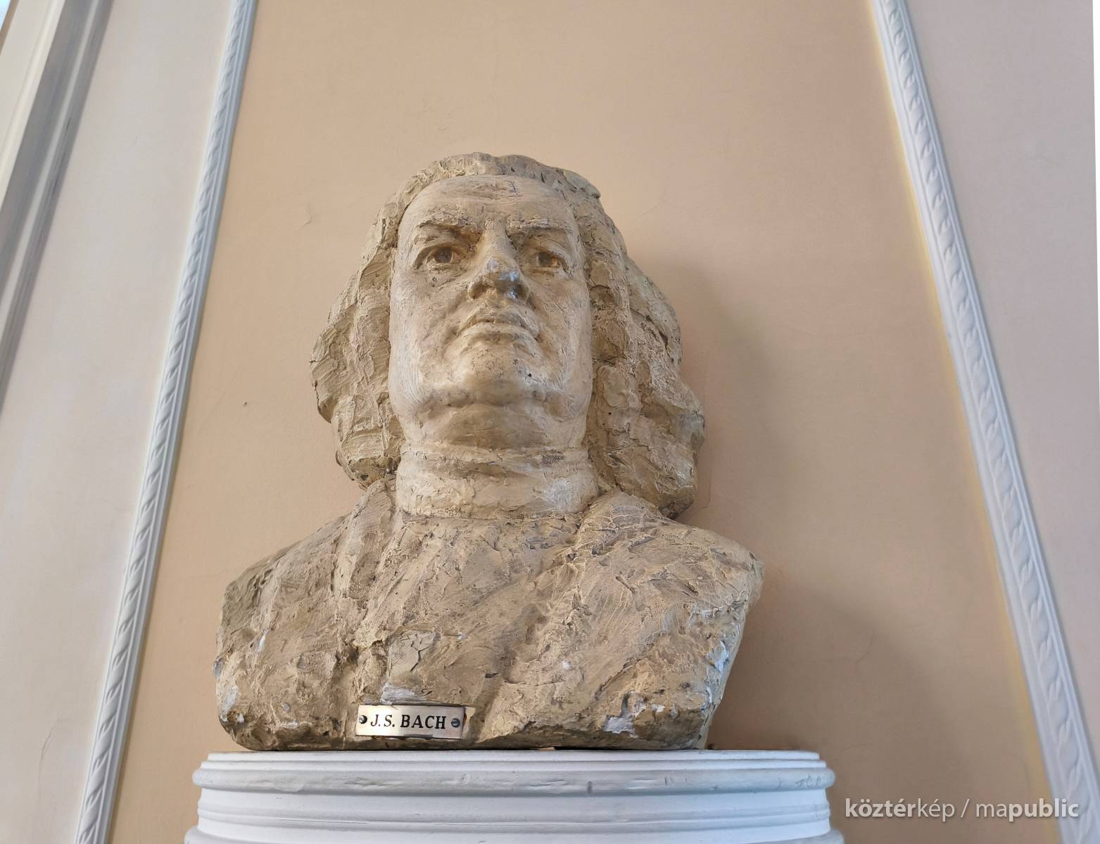 A szabadkai zeneiskola koncerttermében, a bejárattal szemben, lévő falra szerelt konzolon látható a híres zenszerző, Bach életnagyságú mellszobra. Almási Gábor szobrászművész [2] készítette gipszből. Fényes bézs színű festékkel vonták be. A szobrász a művészt rizsporos parókában felemelt fejjel, markáns vonásokkal ábrázolta. Elöl kis táblán a név olvasható.